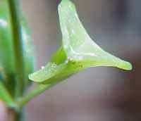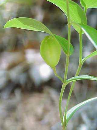Description: From 6 to 12 inches tall, Creamy dropping flowers, stem is slightly downy; leaves are a brighter green and rounded at base. Simular species, perforoliate bellwort,sessile bellwort and large flowered bellwort.Location: Pine barrens